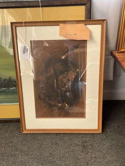 LOT 7286 - Louis Schaettle drawing, Native American, framed 16x21.25