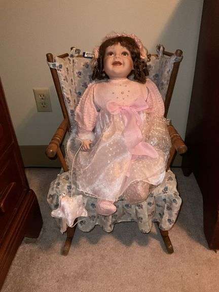 LOT 8170 - Collector doll in vintage child's rocking chair