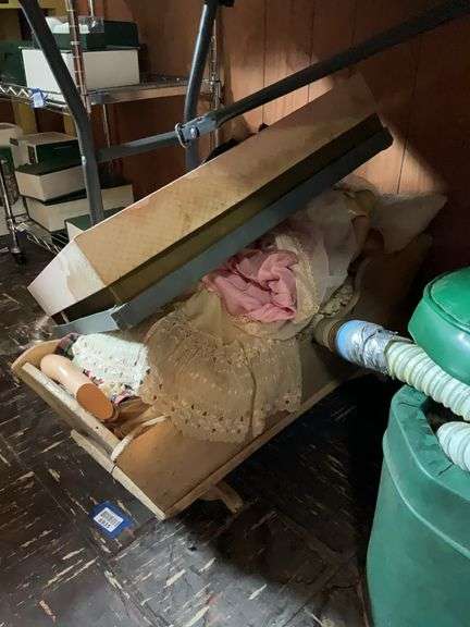 LOT 6935 - Wooden doll cradle, vintage dolls and doll clothing