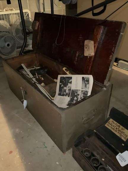 LOT 7005 - Wooden tool chest and misc contents