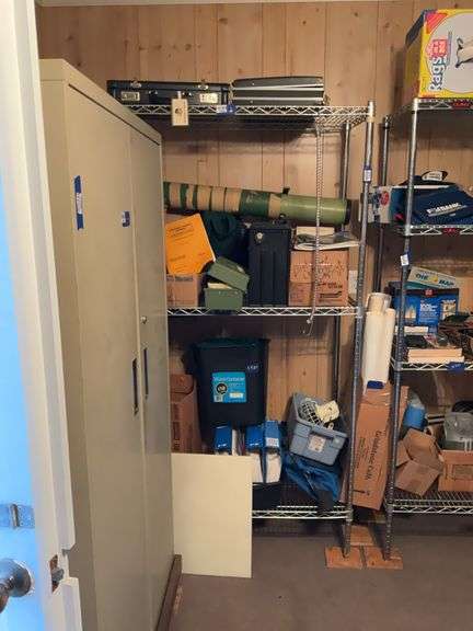LOT 5910 - Metal shelf unit w/ wire shelves - no contents 48x18x74 - MUST COME DURING LAST 2 HOURS OF PICKUP FOR THIS ITEM