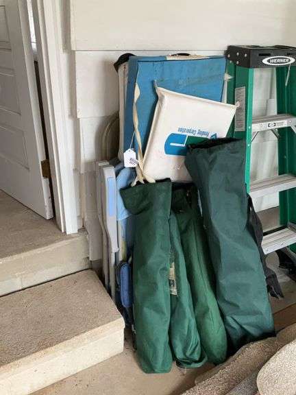 LOT 5877 - Folding bag chairs, seat cushions, folding lawn chair, folding chair