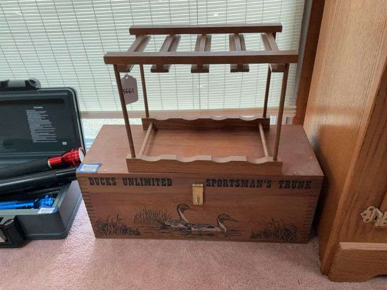 LOT 5661 - Wooden wine rack, and Ducks Unlimited Sportsman's Trunk