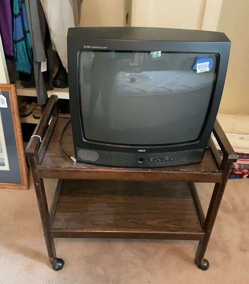 LOT 5621 - RCA TV and rolling TV stand 28x18x26