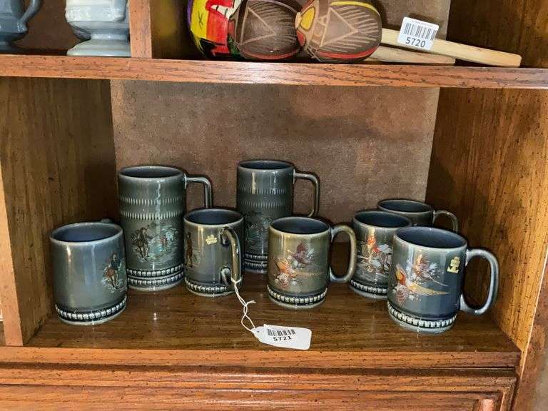 LOT 5721 - Contents of shelf: eight Wade Irish porcelain sportsman mugs