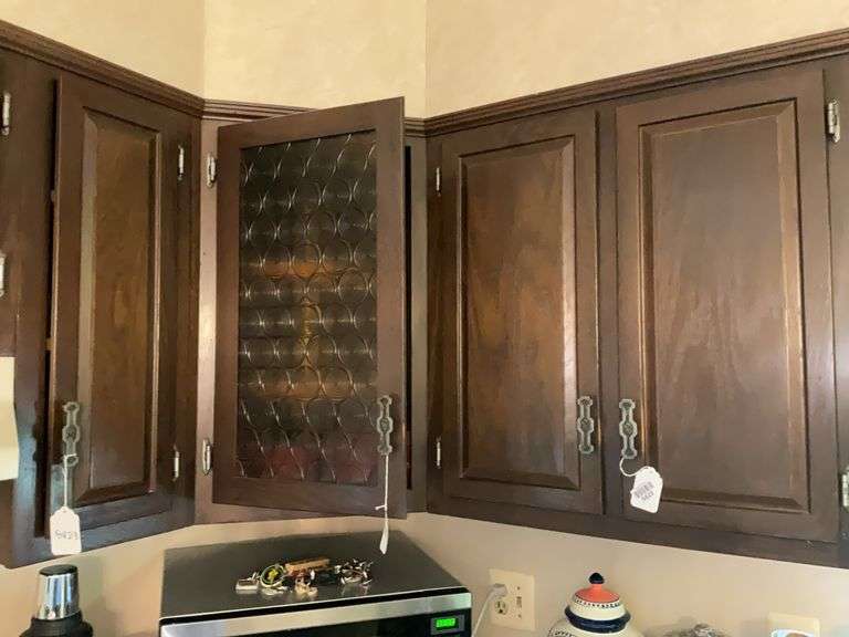 LOT 5823 - Contents of three cupboards: Corning casseroles, warming tray, stemware, glasses, Mainstays stoneware dishes