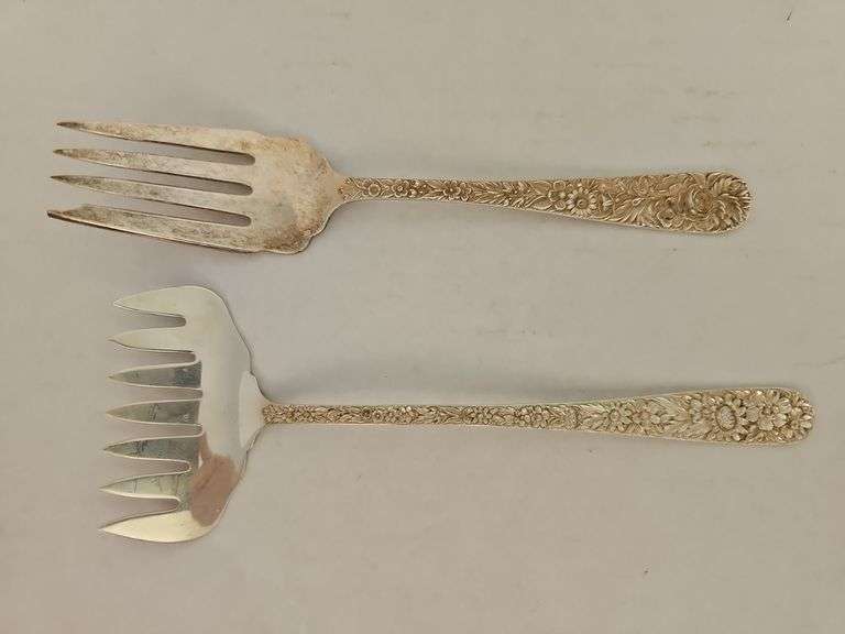 LOT 1884 - S. Kirk & Son Sterling Repousse - Bacon Server & Serving Fork - Not at Auction Property but will be Available for Viewing at Preview & Pick Up