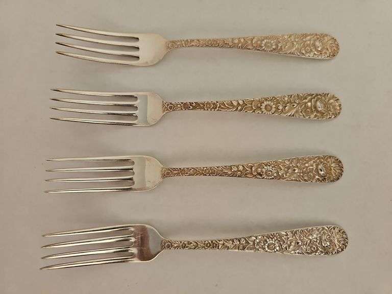 LOT 1874 - S. Kirk & Son Repousse Sterling Dinner Forks by the pc take 4 - Not at Auction Property but will be Available for Viewing at Preview & Pick Up
