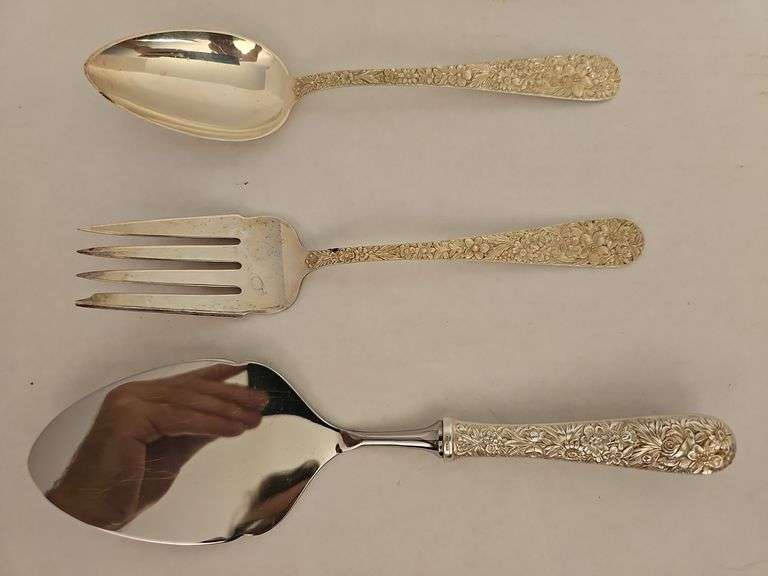 LOT 1865 - S. Kirk & Sons Sterling - Cake Server, Serving Fork & Spoon - Not at Auction Property but will be Available for Viewing at Preview & Pick Up