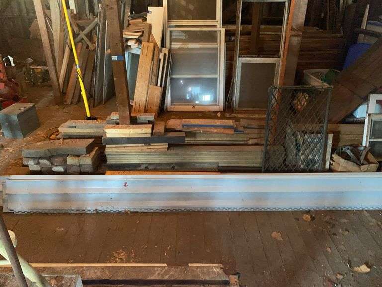 LOT 5498 - Various lumber, wood, siding, bricks, metal grates, brackets, misc