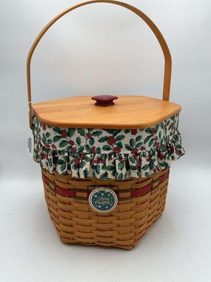 LOT 1698 - 1997 holiday hostess snow flake basket liner, protector, tie on and lid