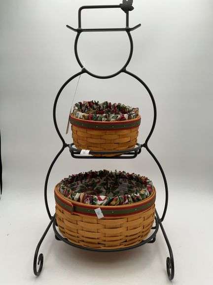 LOT 1708 - Wrought iron small snowman with frosty and frosty jr baskets with liners and protectors