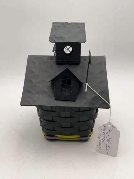 LOT 1722 - Haunted house basket with top of house and tie ons all spooky tie ons