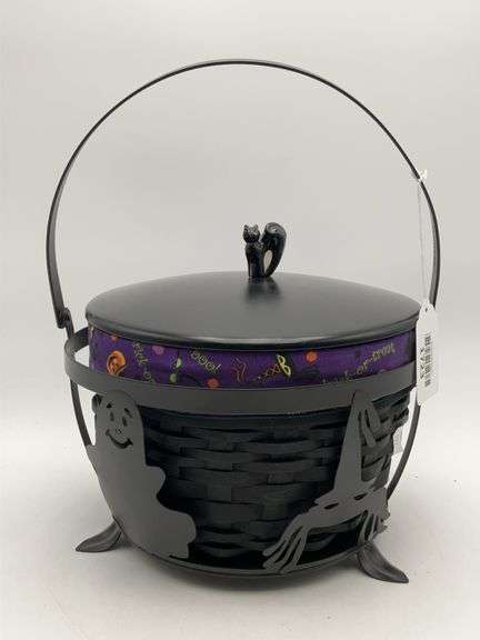 LOT 1723 - Large cauldron basket with liner,protector in wrought holder