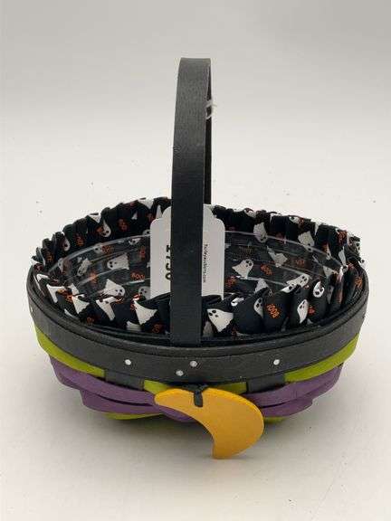 LOT 1730 - 2016 Halloween basket black, purple and green trim liner, protector and tie on