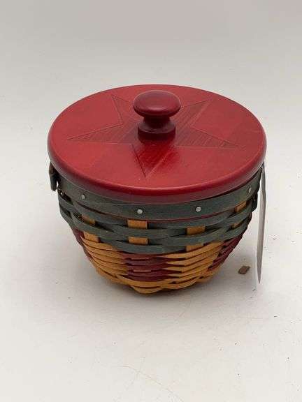 LOT 1827 - 2008 4 inch American celebration bowl basket red and green trim protector and lid