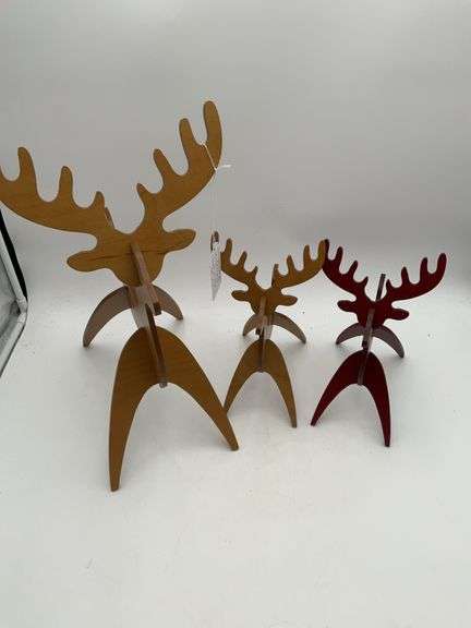 LOT 1950 - Longaberger 3-d woodcrafts 2 small 1 brown and 1 red a big reindeer