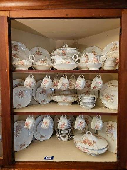LOT 1963 - Beautiful Antique Keswick, England Porcelain China Service for 12 Dinnerware including two covered vegetables, platter, excellent condition