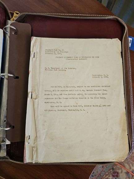 LOT 1832 - A Rare Find - 1939 U.S. Dept of Interior National Park Service Sealed Bids for providing the construction contract for the super-structure for the Thomas Jefferson Memorial at the Tidal Basin, Washington DC including blue prints