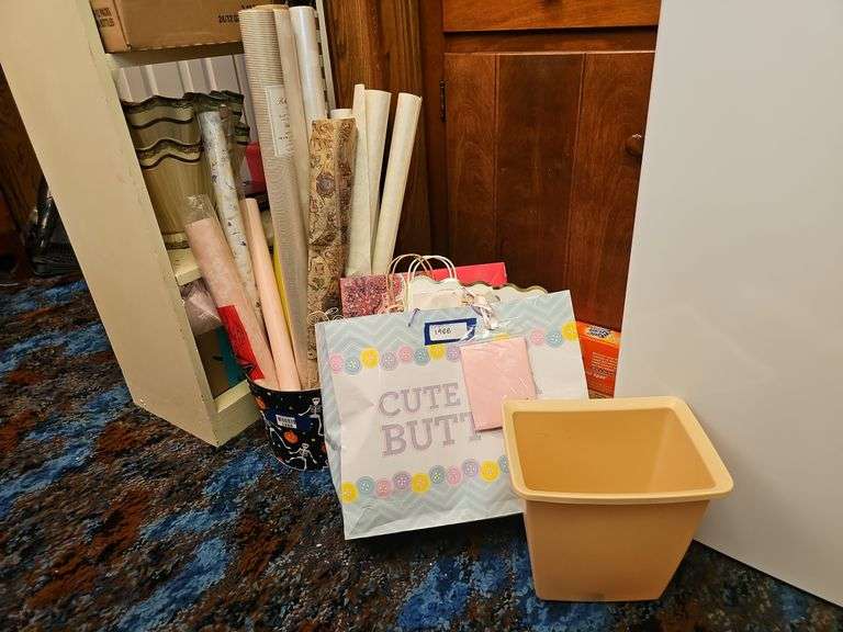LOT 1988 - Wrapping paper & gift bags, does not include wastecan