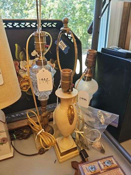 LOT 1994 - Three lamp bases - Figural oil lamp base,