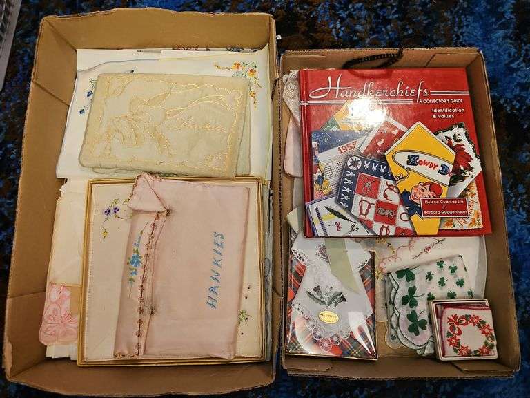 LOT 2001 - Handkerchiefs Collectors Identification Guide, handkerchief holders, nylon, Christmas, St. Patrick’s & more
