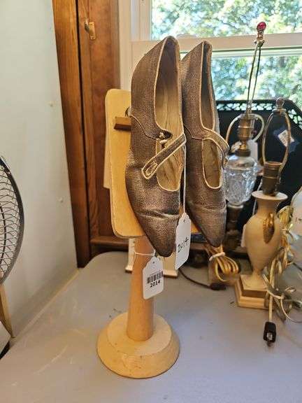 LOT 2014 - Store Window adjustable display shoe stand w/ Ladies Victorian Shoes