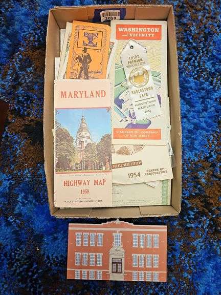 LOT 2098 - Vintage Road Maps, old Automobile Titles, Washington Street Greencastle School Shelf Sitter, Misc Ephemera