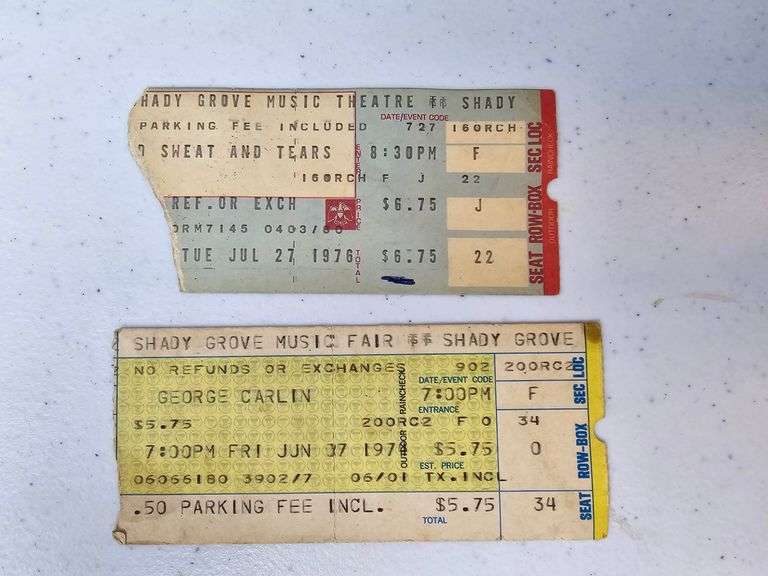 LOT 2124 - Two Shady Grove Music Theatre Concert Tickets - 1976 Blood, Sweat & Tears & 1976 George Carlin