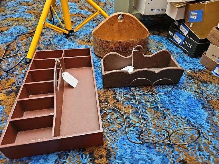 LOT 2181 - Two Reproduction wooden wall mount comb holders & caddy