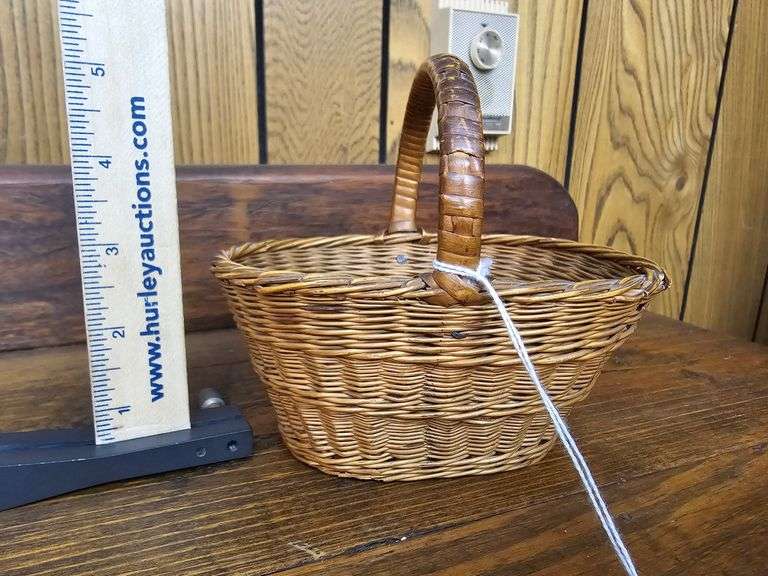 LOT 2236 - Ash Splint Miniature Fine Woven Basket, Oval Straw basket