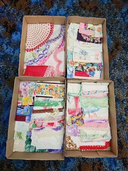 LOT 2201 - Vintage Ladies Handkerchiefs by the box take 4, including crocheted, valentines & round