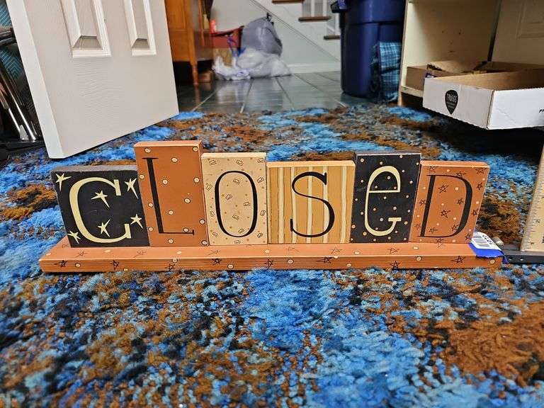 LOT 1973 - 2-sided fall decorated OPEN & CLOSED Sign