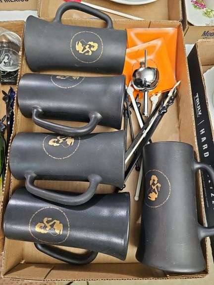 LOT 2271 - Five Playboy Beer Mugs, swizzle sticks, liquor decanter pour spout
