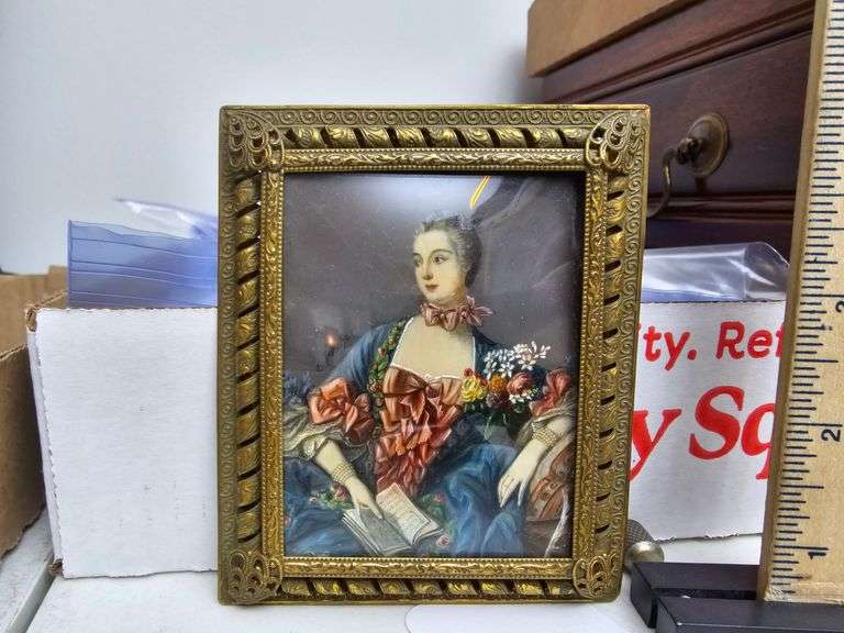 LOT 2246 - Turn of the Century Hand Painted Miniature Photograph, brass frame