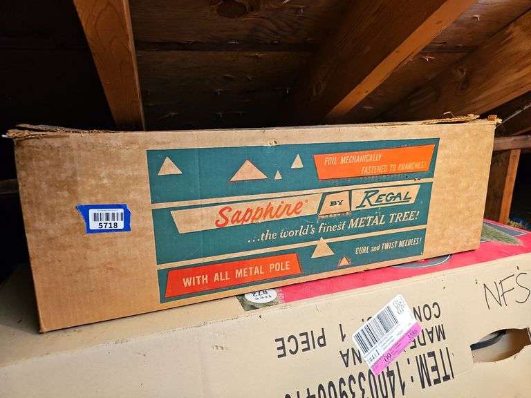 LOT 5718 - Vintage 6.5 Sapphire Aluminum Christmas Tree by Regal, w/ all metal pole in original box