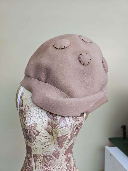 LOT 5804 - Roaring 20’s Cloche Flapper Hat, see photos for damage, w/ Hat Stand, inspection suggested