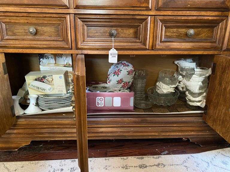 LOT 3997 - Contents of two cupboards: Holly porcelain dinnerware, glass serving bowls