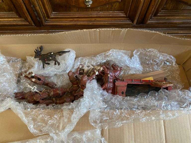 LOT 3998 - Cast iron horse-drawn wagon, cast iron reindeer