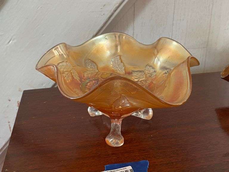 LOT 4000 - Dugan Cherries marigold carnival glass footed bowl