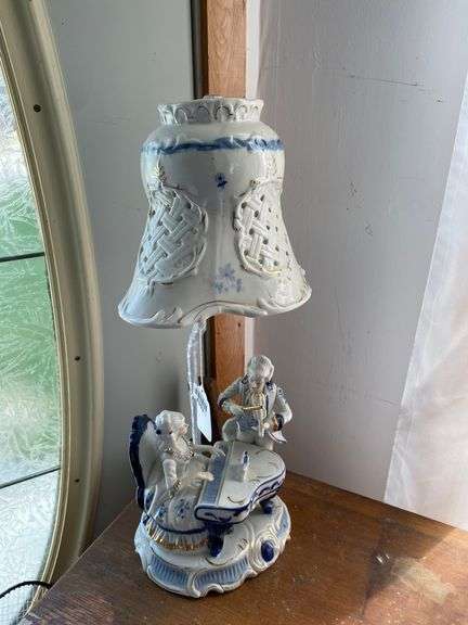 LOT 4101 - Meissen style figural porcelain table lamp w/ pierced porcelain shade
