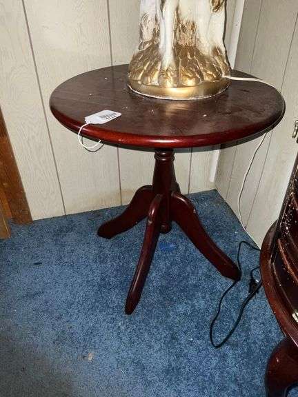 LOT 4114 - Round mahogany finish stand - no contents