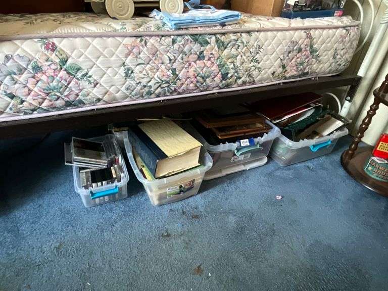 LOT 4126 - CDs, cassette tapes, books, framed embroidery, prints, frames