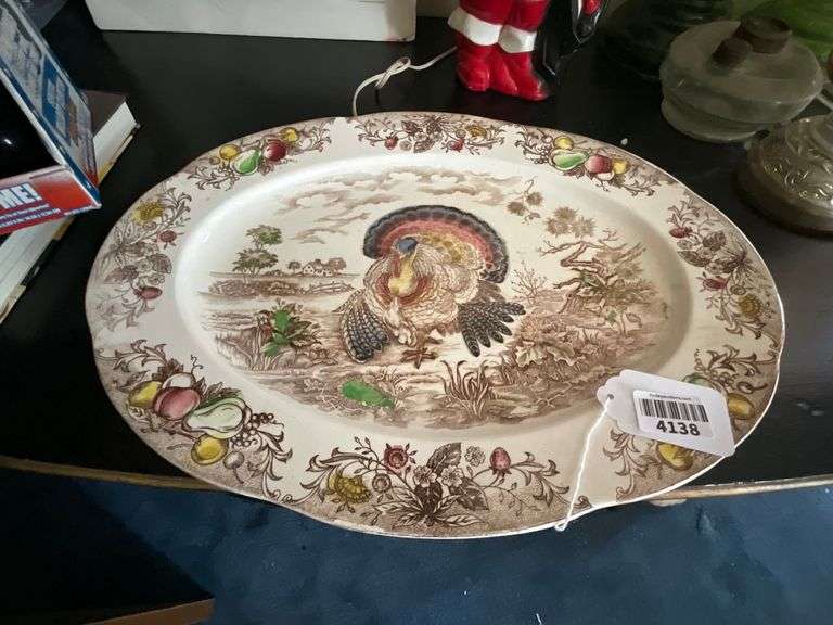LOT 4138 - Brown transfer printed turkey platter w/ hand tinting