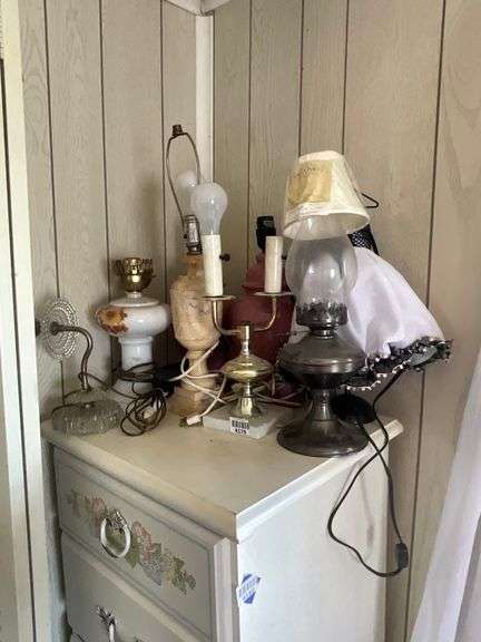 LOT 4179 - Metal oil lamp, glass wall lamp, misc lamp bases