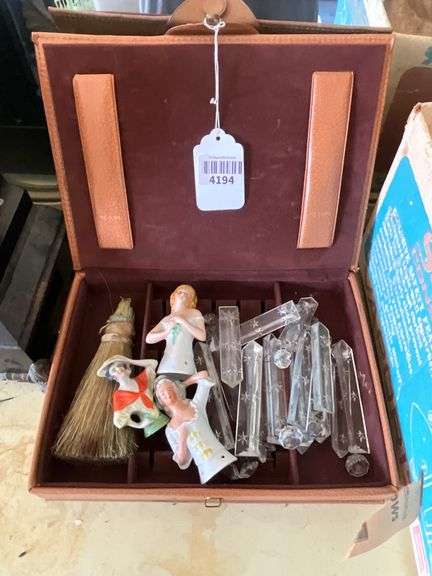 LOT 4194 - China half doll brush(unattached), and two china half dolls, star cut prisms, case