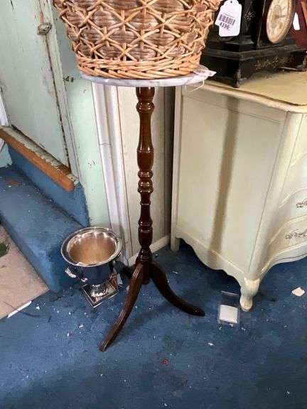 LOT 4197 - Round white marble top pedestal on turned column - no contents