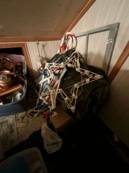 LOT 4202 - Outdoor lighted Christmas stars, candy canes, lamp base, misc