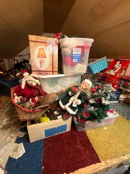 LOT 4206 - Large lot of Christmas decor, snowmen, collector doll, angel lamp, fireman nutcracker, misc
