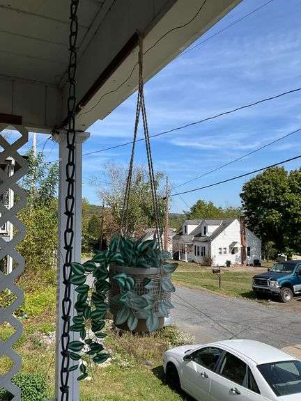 LOT 4237 - Hanging wind chime and planter, garden flag stake